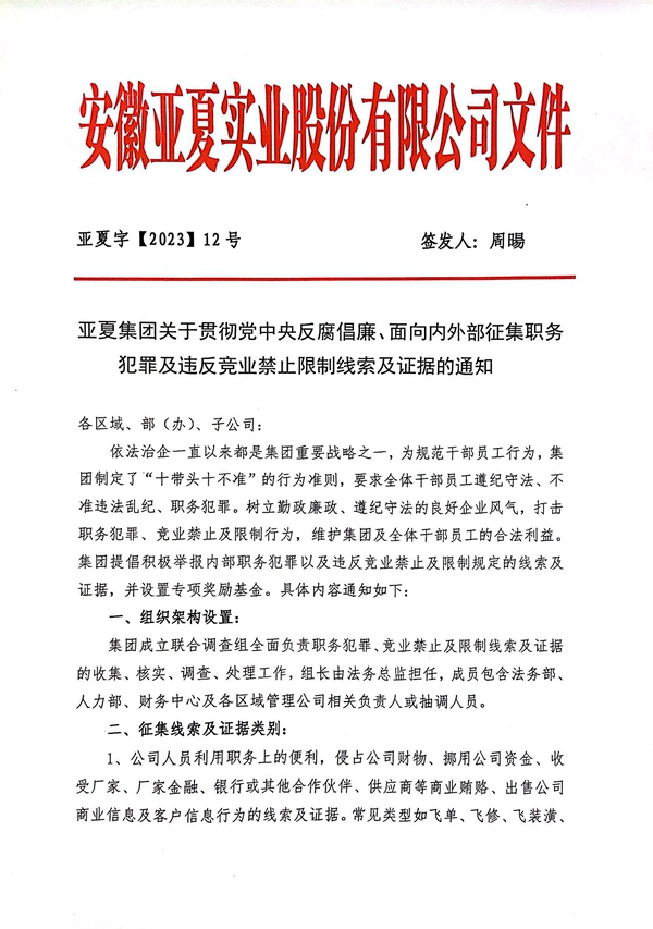 安徽亞夏實(shí)業(yè)股份有限公司
