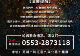 暴雨來襲?地面濕滑出行需低速行駛細心慢行?安全第一24小時救援?|0553-2873118