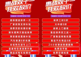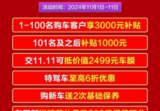 惠戰(zhàn)雙十一狂歡放價活動期間購車享補(bǔ)貼優(yōu)惠?保養(yǎng)套餐買三贈一更劃算活動火爆進(jìn)行 錯過再等一年銷售熱線:0553-2875818售后熱線:0553-2873228