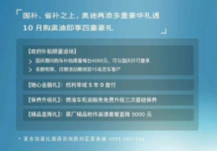 十月#奧迪車主福利 來襲老車主推薦購、增再購有好禮更有國家置換補貼驚喜延續(xù)歡度美好假期更享超贊福利!蕪湖亞夏奧迪 | 0553-2875818