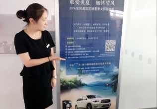 七月。在這個(gè)炎熱的夏季開(kāi)啟之時(shí),蕪湖英菲尼迪夏季服務(wù)月也正式開(kāi)啟送清涼活動(dòng)啦。 “敢愛(ài)炎夏、如沐清風(fēng)”,2016東風(fēng)英菲尼迪夏季關(guān)懷服務(wù)月周到為您服務(wù)。廠家的活動(dòng)給了客戶很大的福利。響應(yīng)廠家的活動(dòng)號(hào)召。我店在第一時(shí)間做好各種宣傳海報(bào),活動(dòng)策劃。為客戶準(zhǔn)備了送清涼全車(chē)免費(fèi)夏季專(zhuān)項(xiàng)檢測(cè)、續(xù)保贏價(jià)值1000元鈑...